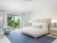 A magnificent beachfront estate with extravagant amenities and wraparound views of azure seas that comfortably accommodates up to 20 guests. Spanning two acres at the eastern end of Grace Bay with 200 feet of beach frontage, this exquisite property is ideal for large groups with diverse interests. Newly built and immaculately finished, the spacious bar, media room, the 100ft long infinity edge pool with 16-person outdoor spa and outdoor kitchen provides plenty of options to gather together, but when you need a little solitude, you’ll find just as many inviting spots to unwind: hanging daybeds, two beach decks, shady terraces and a sunken seating area, to name a few. Active vacationers will have pickle ball, ping pong and basketball facilities, snorkel or kayak equipment, and a fully equipped gym at their disposal. And if that is not enough, there is also a hair salon with a manicure and pedicure station to ensure you look as good as you feel. All this, with a full complement of staff to attend to your every need.